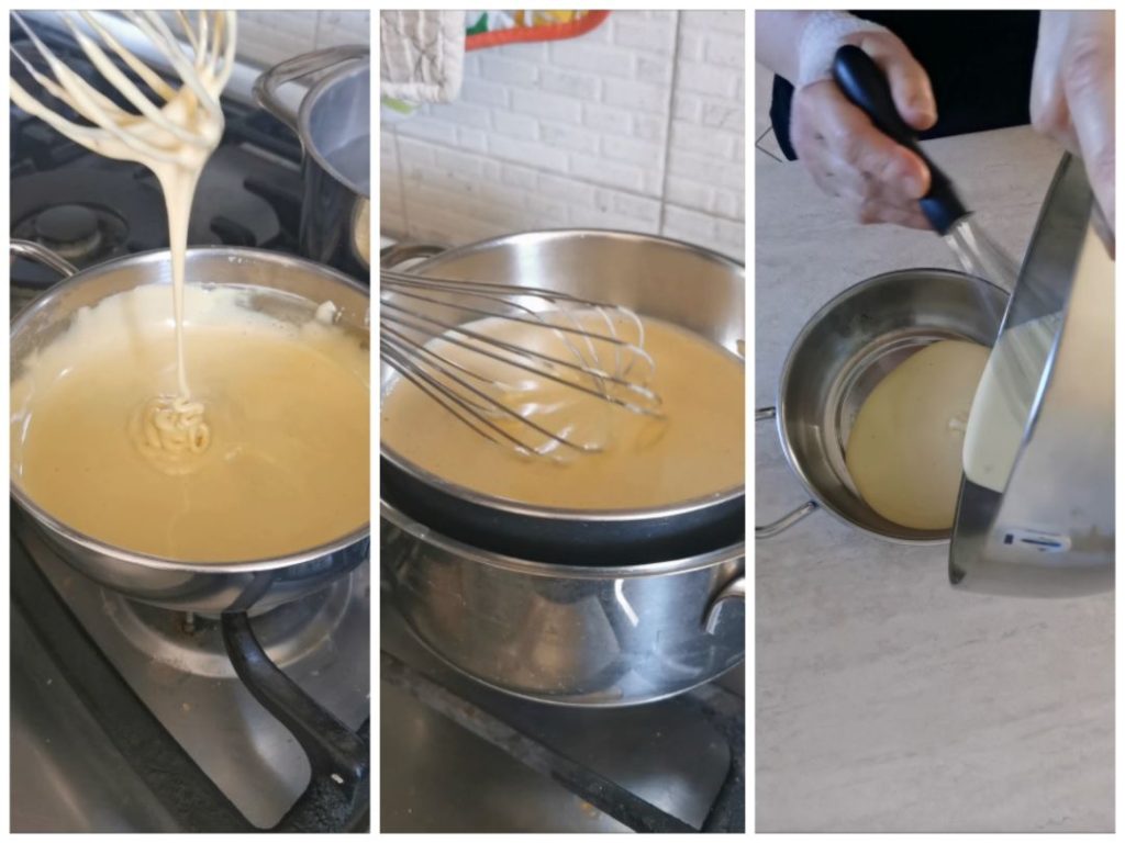 Vamos preparar o recheio. Em uma tigela, bata as gemas com o açúcar usando uma batedeira elétrica (se quiser comprar, clique aqui) até obter um creme espesso e claro. Adicione o marsala aos poucos, continuando a mexer