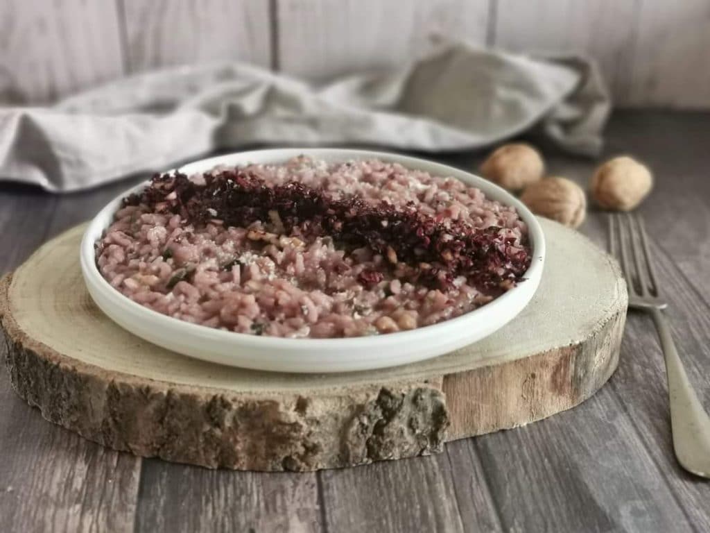 Risoto com radicchio taleggio nozes, um primeiro prato com pouquíssimos ingredientes, mas realmente suculento.