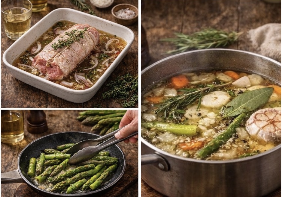 Preparar o Rolo de vitela com aspargos e zabaione salgado também significa valorizar ingredientes sazonais e técnicas clássicas revisadas em chave moderna. Os aspargos, protagonistas da estação primaveril, trazem frescor e uma nota vegetal que equilibra perfeitamente a riqueza da carne e do molho. O zabaione salgado, por sua vez, é um toque criativo que transforma um prato tradicional em uma proposta gourmet. O resultado é um segundo prato cenográfico e rústico ao mesmo tempo.