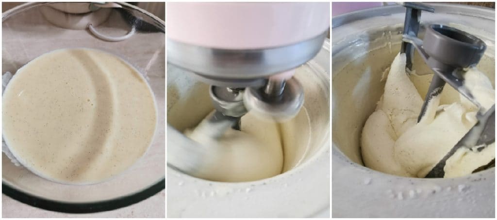 Bata com um mixer de imersão o leite de amêndoas e o chantilly vegetal, bem frios, em uma tigela. Adicione o açúcar e a farinha de amêndoas, bata. Coloque a mistura na sorveteira e deixe bater por cerca de 30/40 minutos.