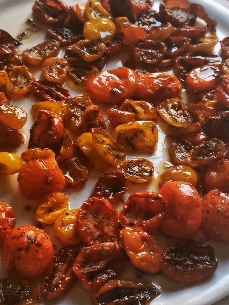 Descobri por acaso os Tomatinhos confit, e fiquei impressionada. Deliciosos tomatinhos caramelizados no forno com um sabor único. Podem ser uma entrada perfeita, mas são amplamente utilizados em muitas receitas. O termo confit vem do francês confire, que significa preservar. Este termo é usado para todos os tipos de frutas e vegetais que requerem cozimento prolongado em baixa temperatura. Fáceis de preparar, deliciosos de comer. Perfeitos como acompanhamento, combinados com bruschettas, tortas salgadas, ou assim ao natural