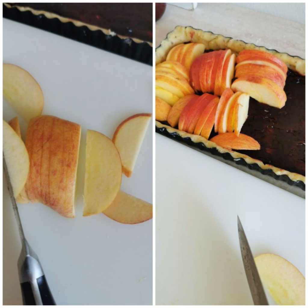Uma torta especial, perfumada, crocante ao morder, tal como a vovó fazia. Como em qualquer receita clássica, existem muitas versões; a que proponho hoje é a que minha avó fazia, uma preparação simples e rápida. Uma base de massa quebrada, coberta de geleia e decorada com muitas fatias finas de maçã.