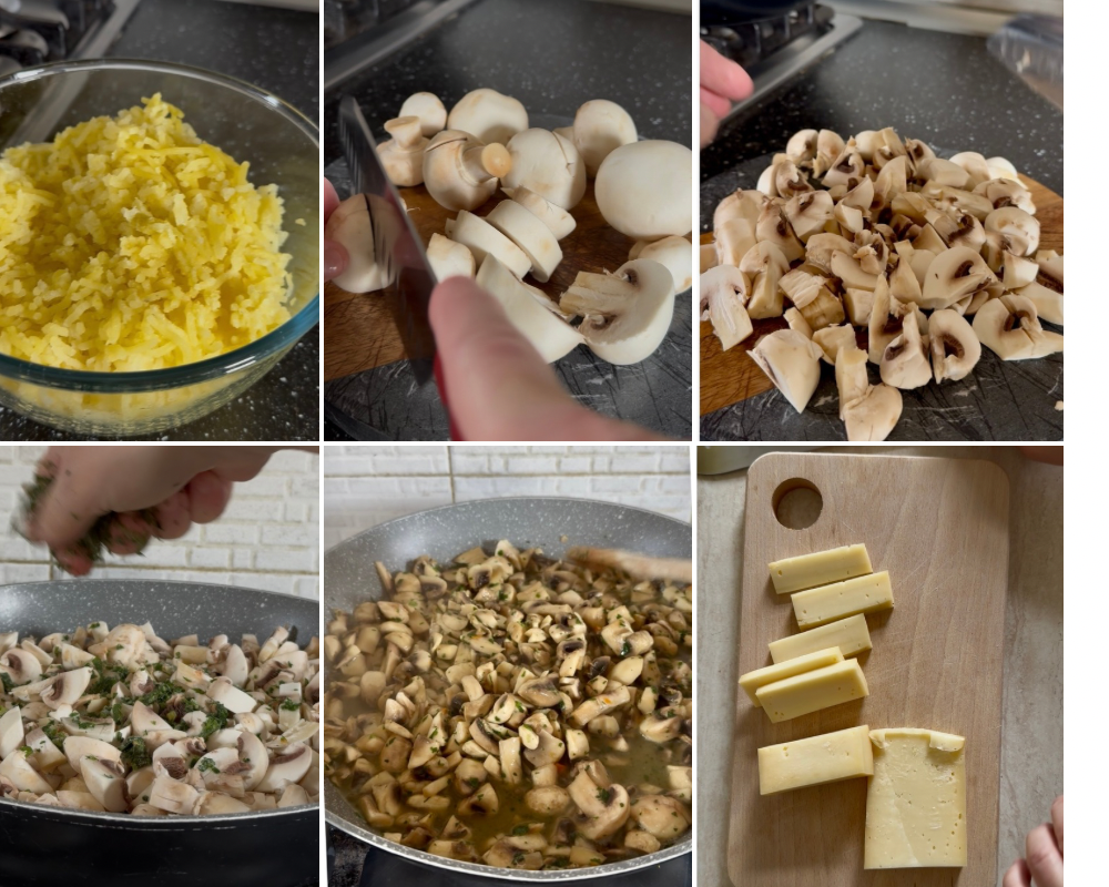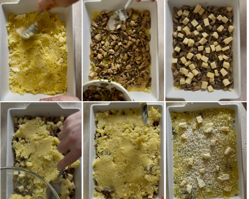 Passos para torta de batata, cogumelos e queijo
