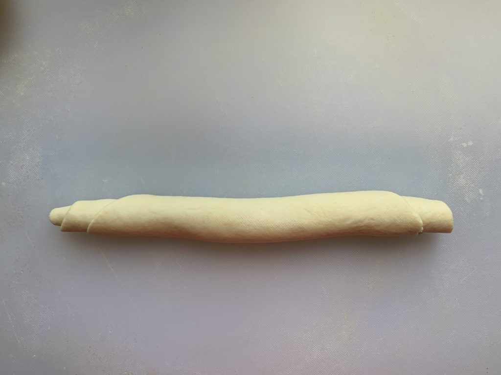 Depois enrole-a em espiral, faça o mesmo procedimento com as outras massas, cubra-as e deixe descansar por 20 minutos.