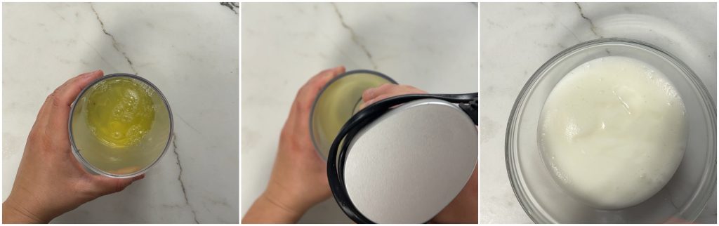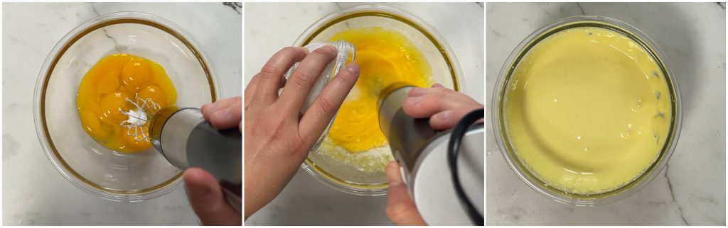 Bata com uma batedeira elétrica as gemas até obter uma mistura espumosa e clara.