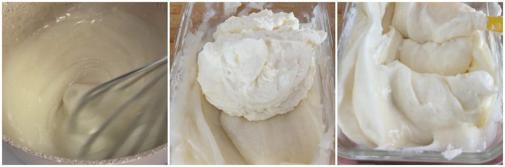 Quando a creme estiver completamente fria, bata o creme de leite até ficar bem firme e adicione-o à creme, mexendo de baixo para cima para não desmontá-lo.