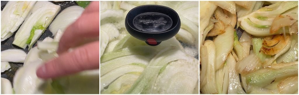 Se perceber que o funcho está grudando na frigideira, adicione um pouco de água.