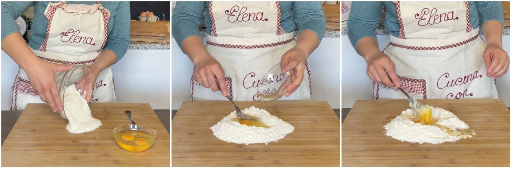 Crie um buraco no centro da farinha e despeje no centro os ovos inteiros.