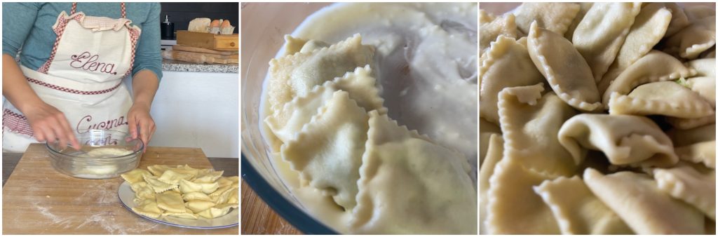 Ferva os ravioli por alguns minutos, depois escorra-os com uma escumadeira e coloque-os em um prato grande bem espaçados.