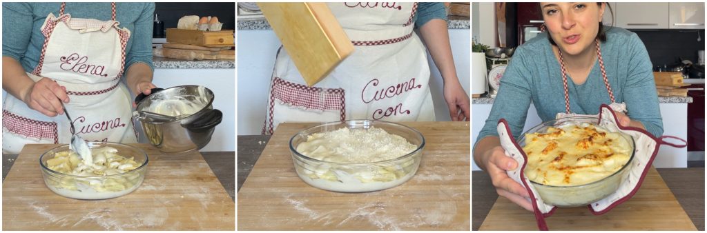 • Cubra a superfície dos ravioli com o molho bechamel e polvilhe com parmigiano reggiano ralado.