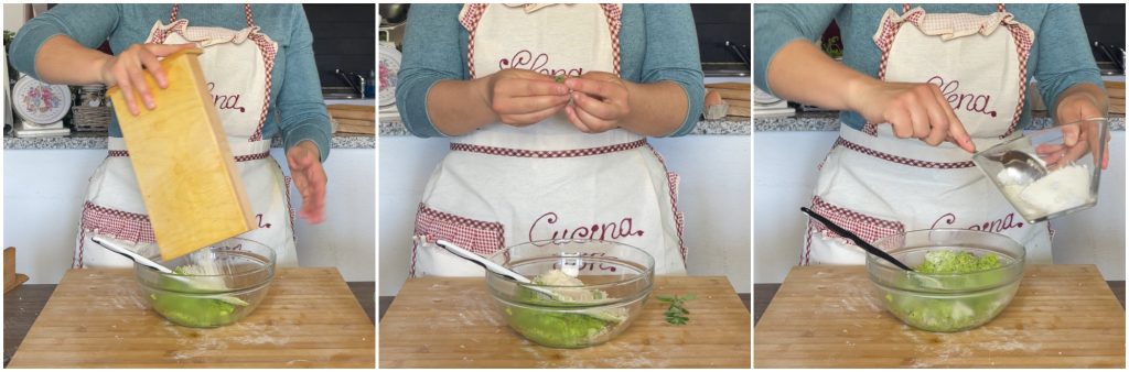 • Adicione aos vegetais o parmigiano reggiano, a manjerona e a ricota.