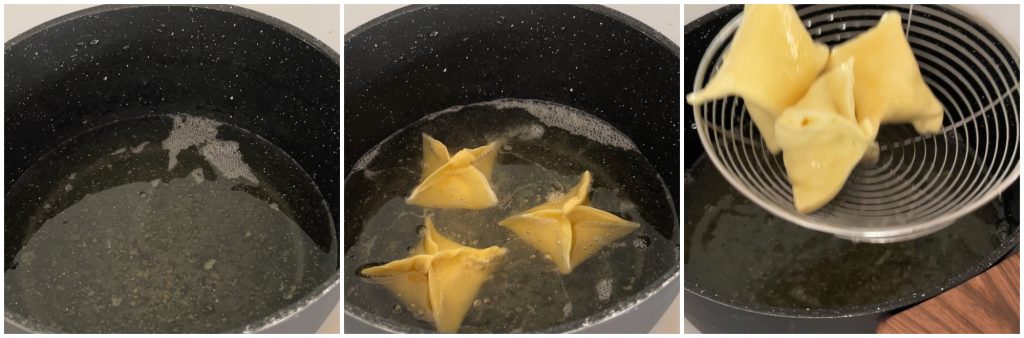 Frite os raviolis em óleo abundante e quente.