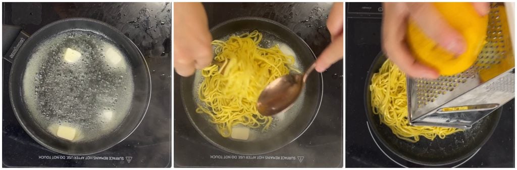 Adicione as raspas de limão, misture na frigideira para incorporar e sirva bem quente.
