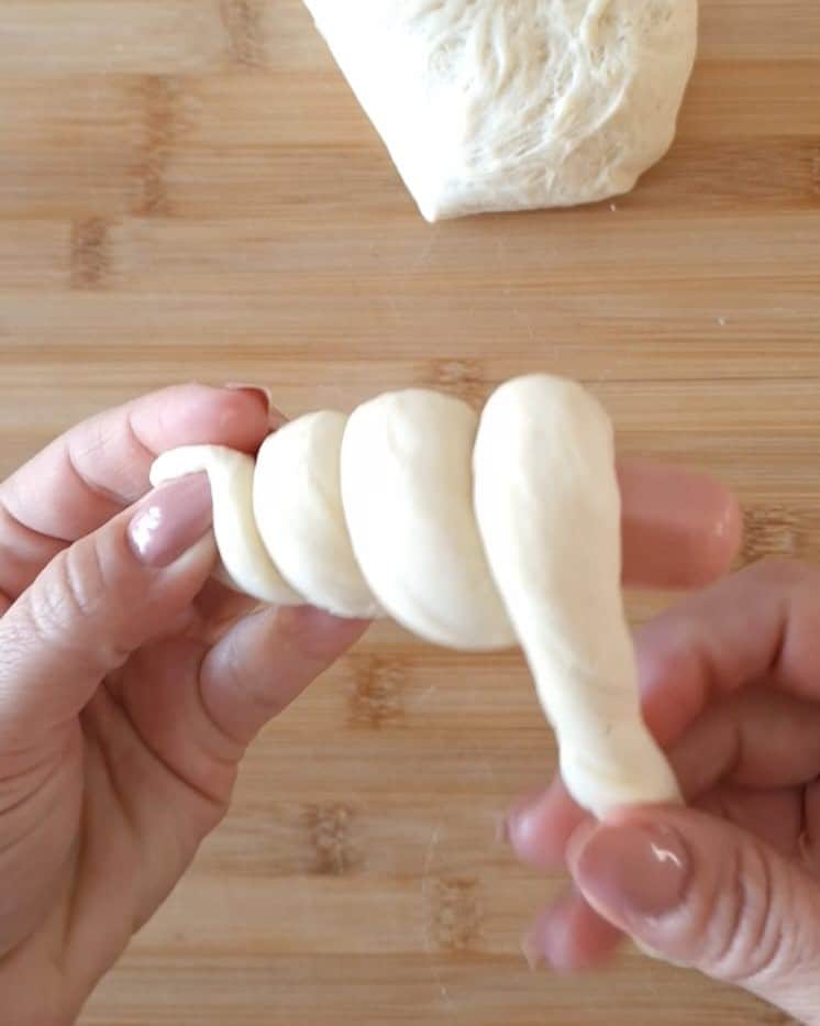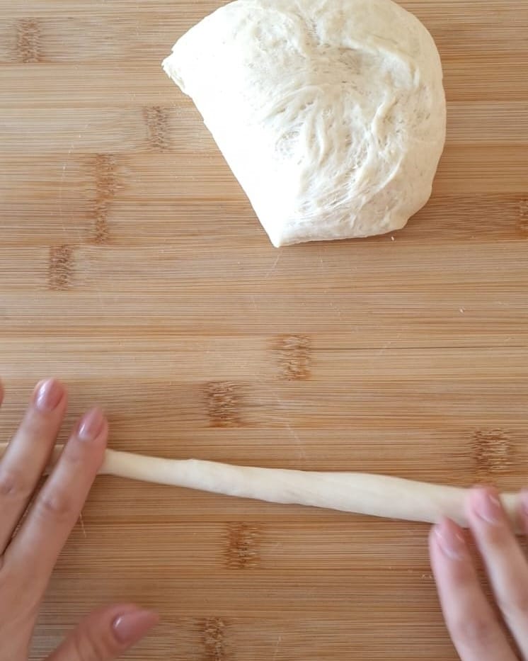 Para os enroladinhos com salsicha, forme pequenas cobrinhas para enrolar cada salsicha.