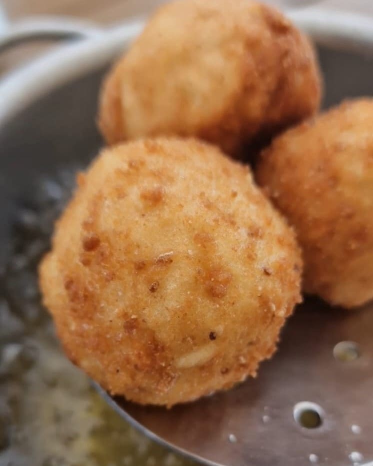 Aqueça o óleo e em seguida mergulhe suas arancine de arroz, retire-as quando estiverem bem douradas.