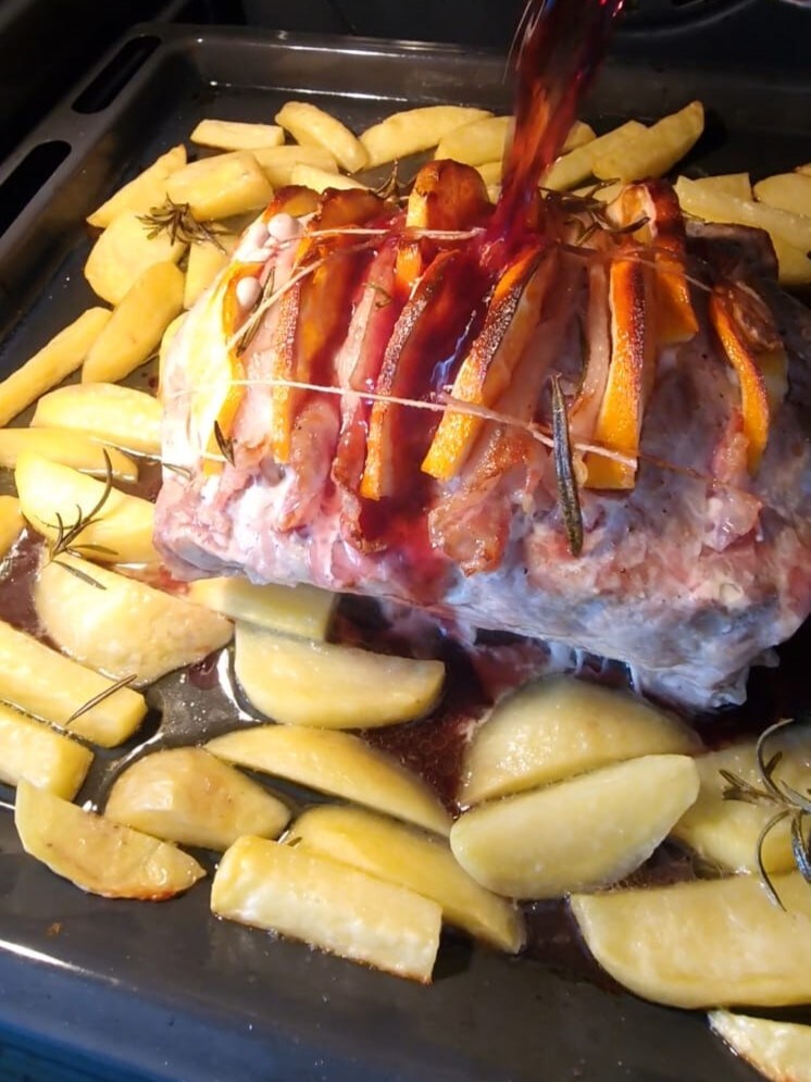 O Assado de laranja macio e saboroso é um segundo prato fácil e suculento, nada a invejar aos grandes clássicos da culinária italiana como o assado na panela ou o filé de porco em crosta. O assado de laranja é macio e delicado, perfeito para o almoço de domingo em família ou para as festividades. A receita é muito simples, basta temperar um bom pedaço de carne com fatias de laranja, sal, pimenta e especiarias, assar no forno e nada mais! Você pode servir com batatas ao estilo texano, ou com abóbora assada com páprica e amêndoas. Agora deixo vocês com a receita passo a passo e, se experimentarem, me digam!