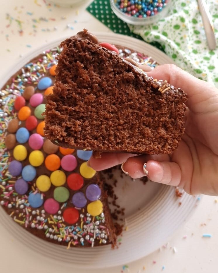 Desenforme e deixe esfriar completamente sobre uma grade, em seguida, proceda espalhando a Nutella ligeiramente amolecida no micro-ondas sobre a superfície e depois decore com os confeitos coloridos.