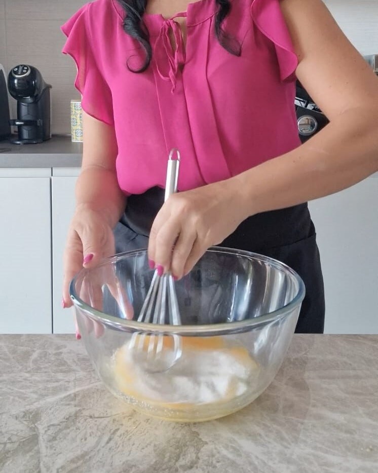 Em uma tigela, bata os ovos com o açúcar e a casca de limão ralada.
