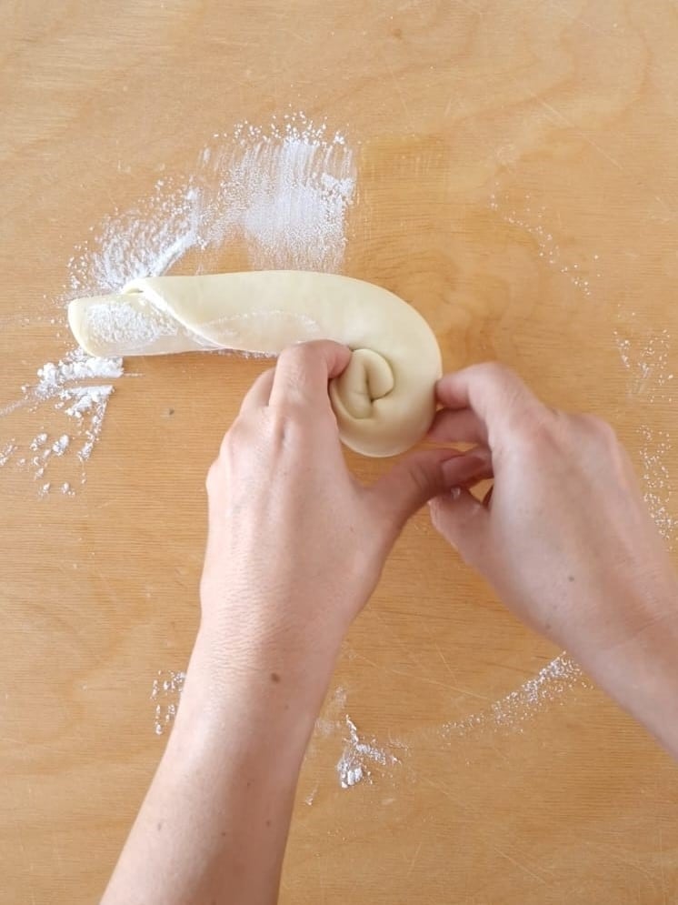 Retome as espirais e abra com o rolo.