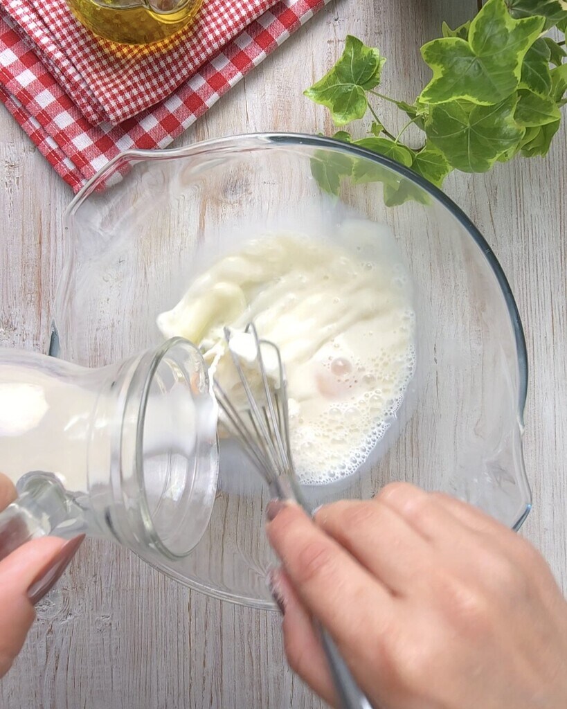 • Para evitar grumos, misture com um batedor até obter uma massa lisa e bem homogênea, cubra a tigela com filme plástico e deixe descansar por 30 minutos na geladeira.
