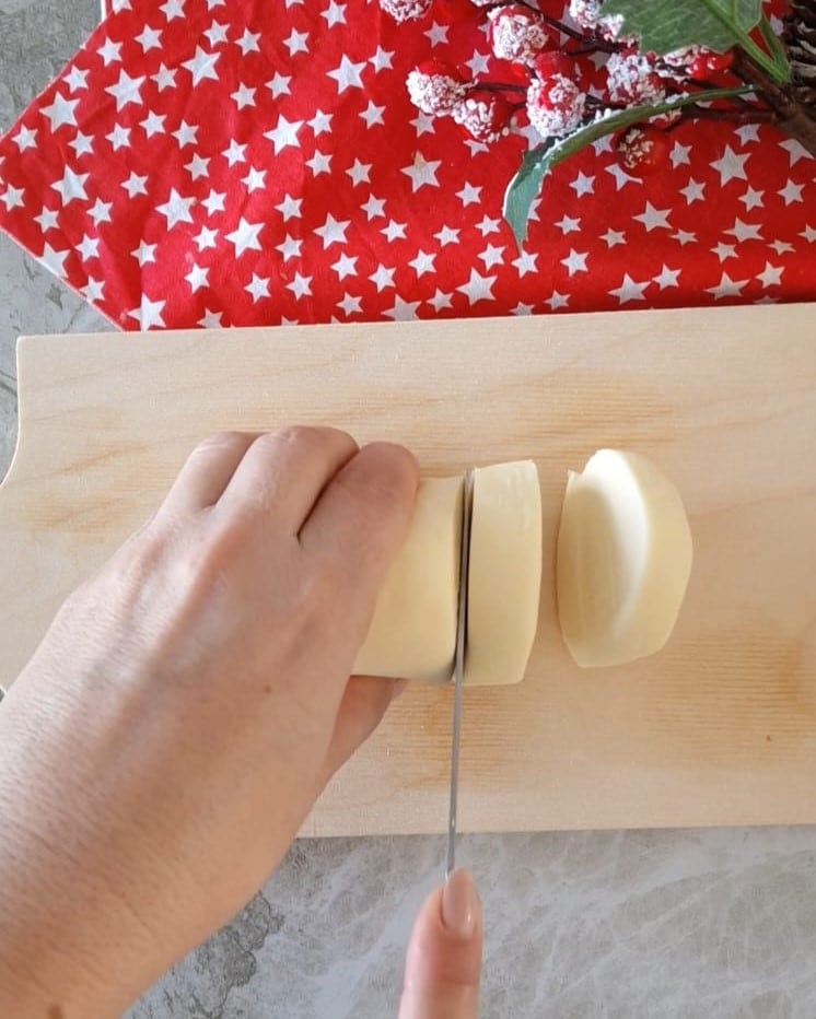 • Após o tempo de descanso, corte em fatias de cerca de 1 cm com uma faca de lâmina lisa e bem afiada.