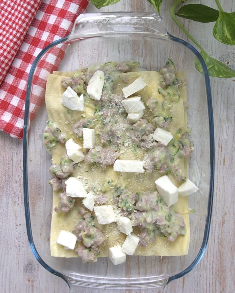 Lasanha com abobrinha e linguiça