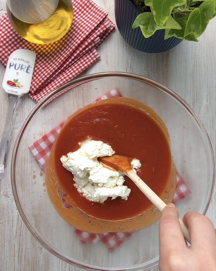 Despeje o purê de tomate e cozinhe por 10 minutos, adicione sal e pimenta.