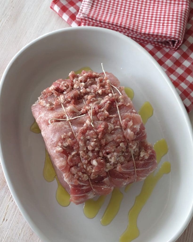 Neste ponto, com um barbante de cozinha, amarre a carne para que durante o cozimento ela não abra.