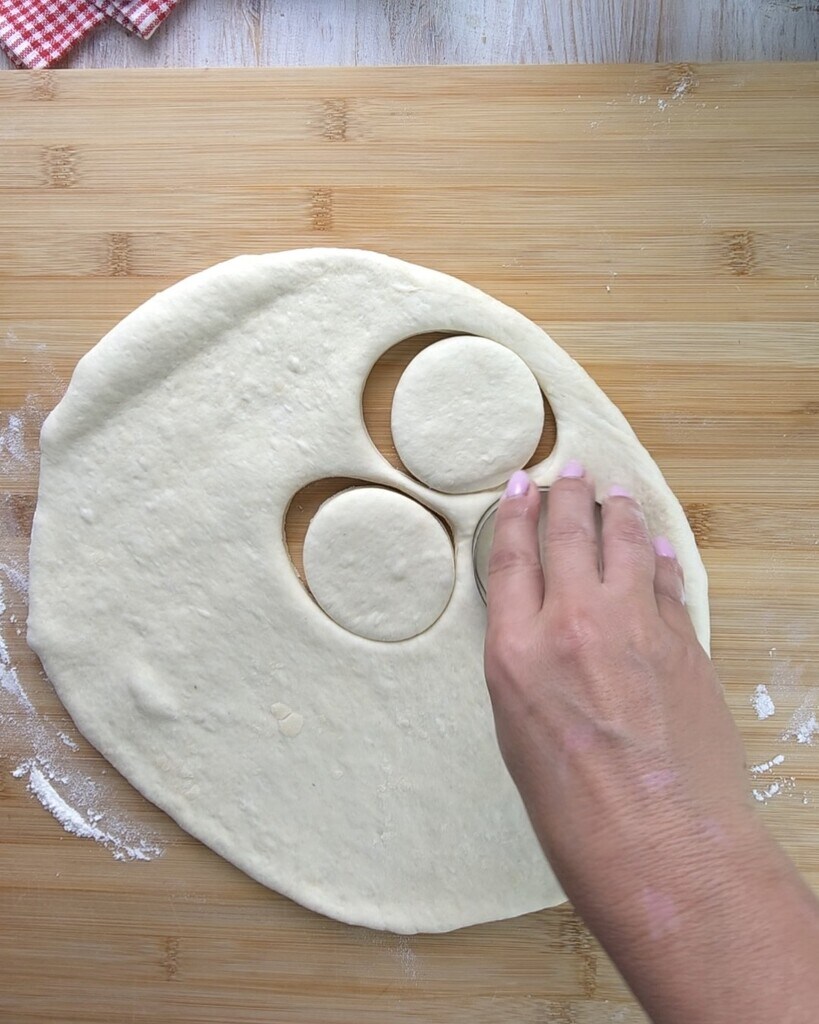 Com um cortador de massa (ou um copo), faça discos.