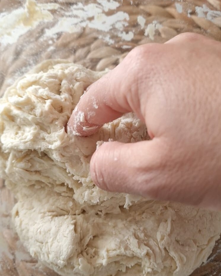 Misture tudo bem até formar uma massa lisa e homogênea, cubra a tigela com filme plástico e deixe descansar por pelo menos 1 hora no forno desligado com apenas a luz acesa.