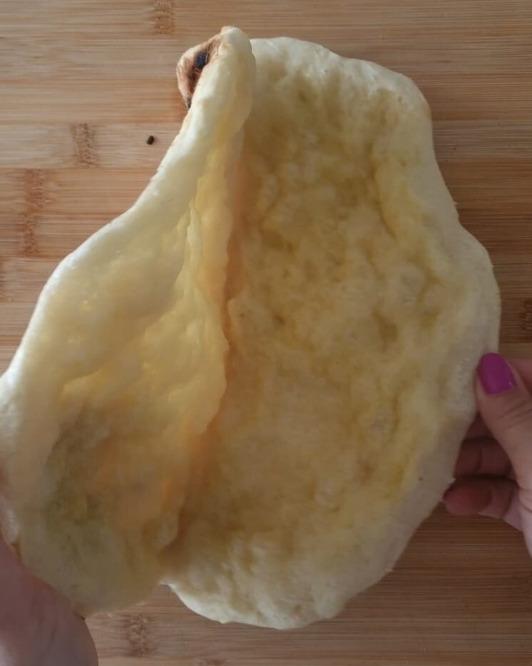 A pizza baciada também pode ser assada no forninho de pizza ou na airfryer. Obviamente, você pode recheá-la como preferir: Pesto e stracciatella, presunto cozido e muçarela, ou com legumes grelhados para uma versão vegetariana.
