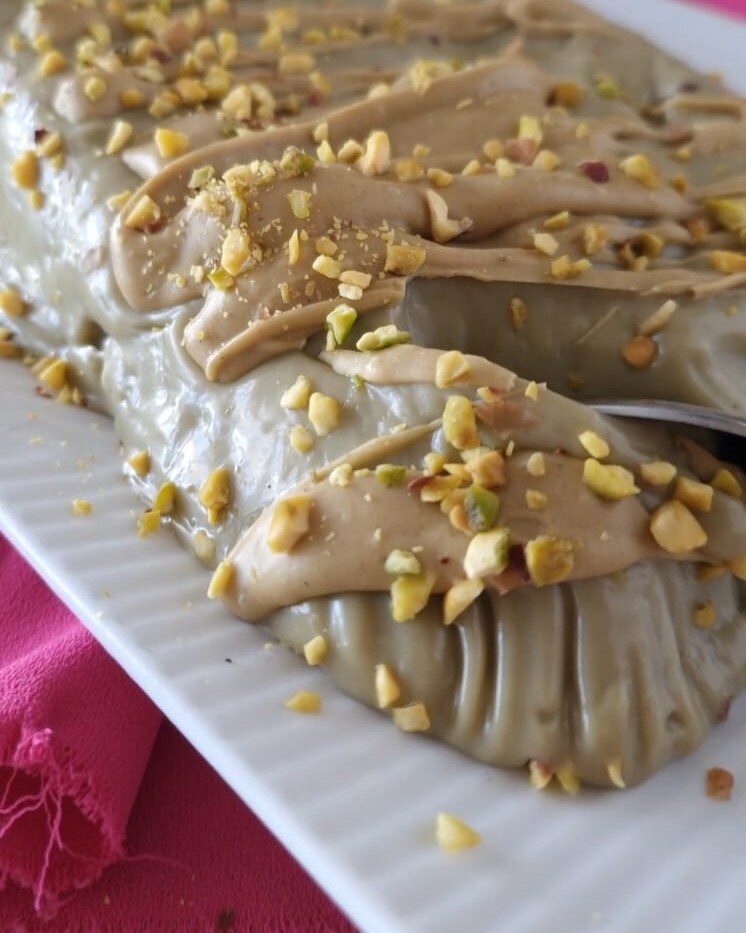 O pudim de pistache é uma sobremesa de colher deliciosa! A receita é uma releitura do pudim de nutella, mas no blog você também encontrará o pudim de leite condensado e caramelo e o pudim de pão, este último é imperdível! A versão com creme de pistache é realmente fácil, ideal se você tiver convidados para o almoço, porque você pode prepará-lo no dia anterior, se preferir, você pode fazer em porções individuais. O Pudim é uma sobremesa italiana realmente deliciosa, semelhante ao creme, mas com uma consistência mais densa, é sem gelatina e é sem ovos. Pode ser servido com chantilly e granulado de pistache para torná-lo ainda mais saboroso.