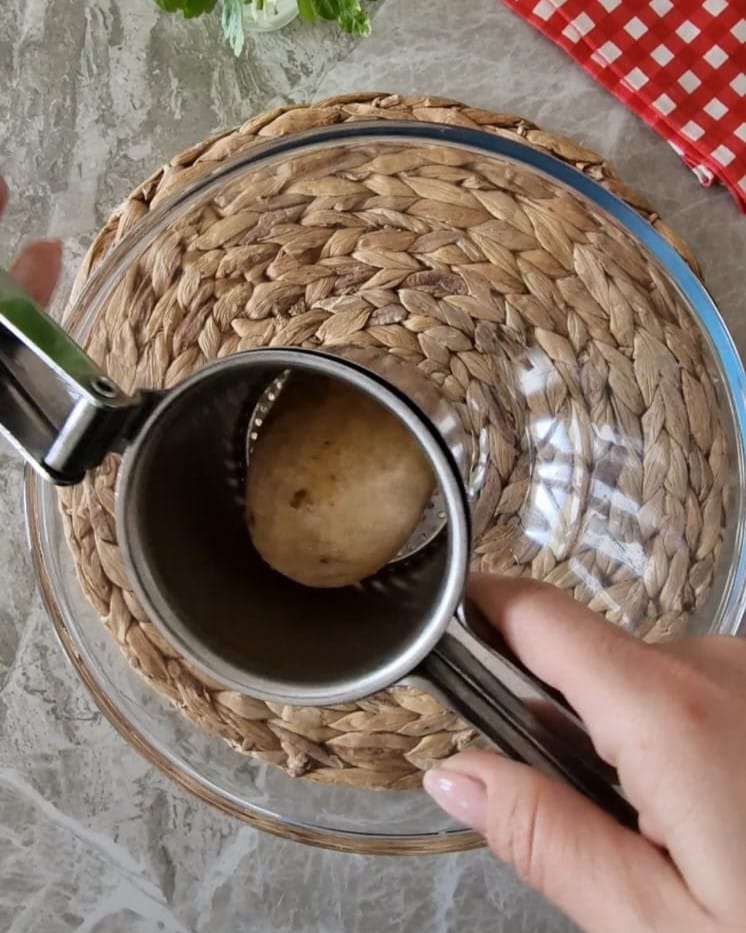 Adicione às batatas quentes, o sal, o queijo ralado e o ovo, depois misture tudo.