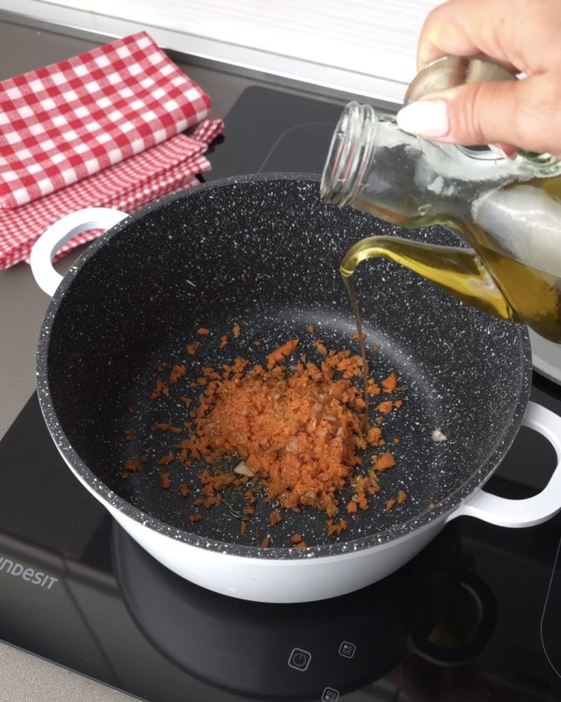• Evapore com o vinho, tempere com uma pitada de sal e os legumes.