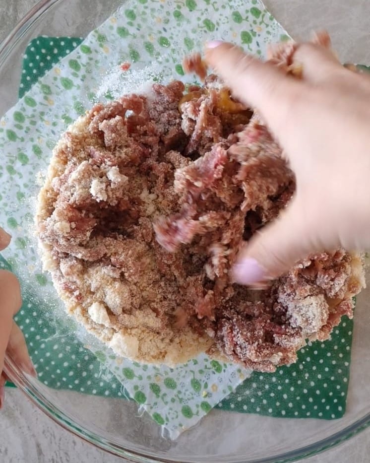em seguida, com as mãos, comece a misturar bem todos os ingredientes.