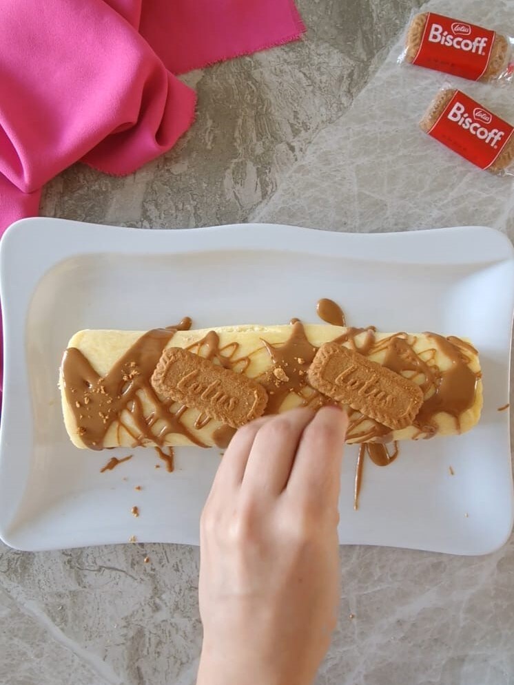 O rolo com creme de lotus pode ser conservado na geladeira por até 3 dias.