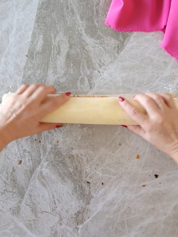 Neste ponto, enrole bem apertado o rolo sobre si mesmo.