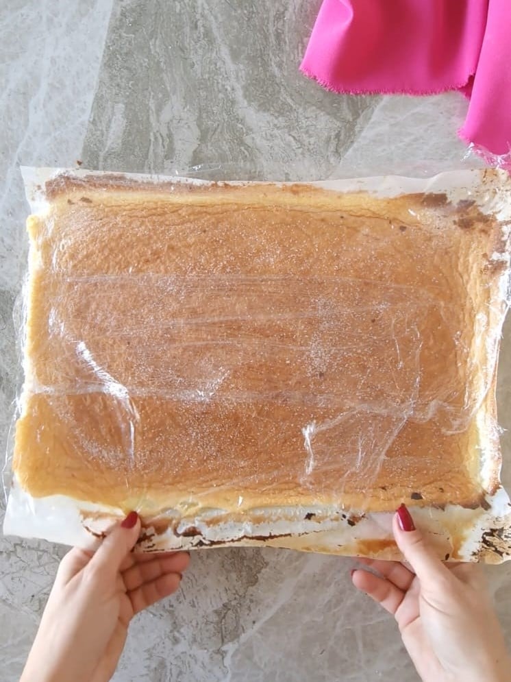 Uma vez fria, retire o papel e o filme, então prepare o recheio.