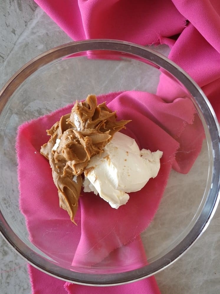 Em uma tigela, coloque o mascarpone, o chantilly, e o creme de lotus.