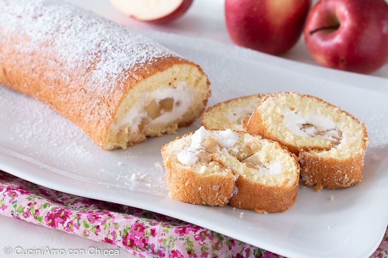 Rolo doce com maçãs, é uma sobremesa de outono, deliciosa e perfumada com canela. Sobremesa de colher perfeita para todas as ocasiões. Já experimentou o rolo sacher e o rolo com chantilly e alchermes, eles são realmente muito saborosos! A receita do rolo de maçã é muito fácil e este recheio cremosíssimo irá conquistar grandes e pequenos. Vamos apostar? Se você provar, me avise e não esqueça de me seguir nas minhas páginas Facebook e Instagram.