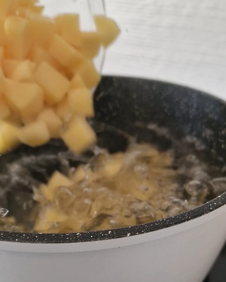 Ferva-as por 8-10 minutos em água salgada fervente, depois escorra-as, deixando esfriar por alguns instantes.