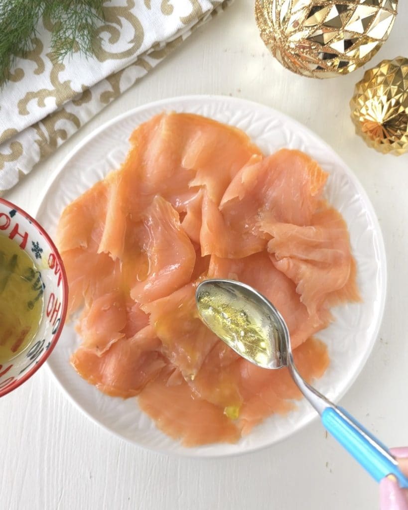 Salmão marinado, uma receita deliciosa para servir como entrada ou prato principal leve. Ideal para incluir no cardápio da Véspera de Natal. Se você precisa de outras ideias à base de peixe, recomendo estes Aperitivos de peixe rápidos que podem ser preparados com bastante antecedência. Voltando à preparação de hoje, o salmão assim preparado oferece uma marinada forte e agradável ao paladar. É uma receita deliciosa e rápida, que você pode acompanhar com torradas crocantes e cobertas de queijo cremoso. Não se esqueçam de me seguir nas minhas páginas do Instagram e Facebook espero vocês!
