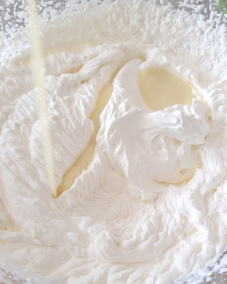 Despeje o creme de leite fresco em uma “tigela de vidro fria da geladeira” e bem grande, bata-o com a batedeira elétrica com as “varas também frias de geladeira“.