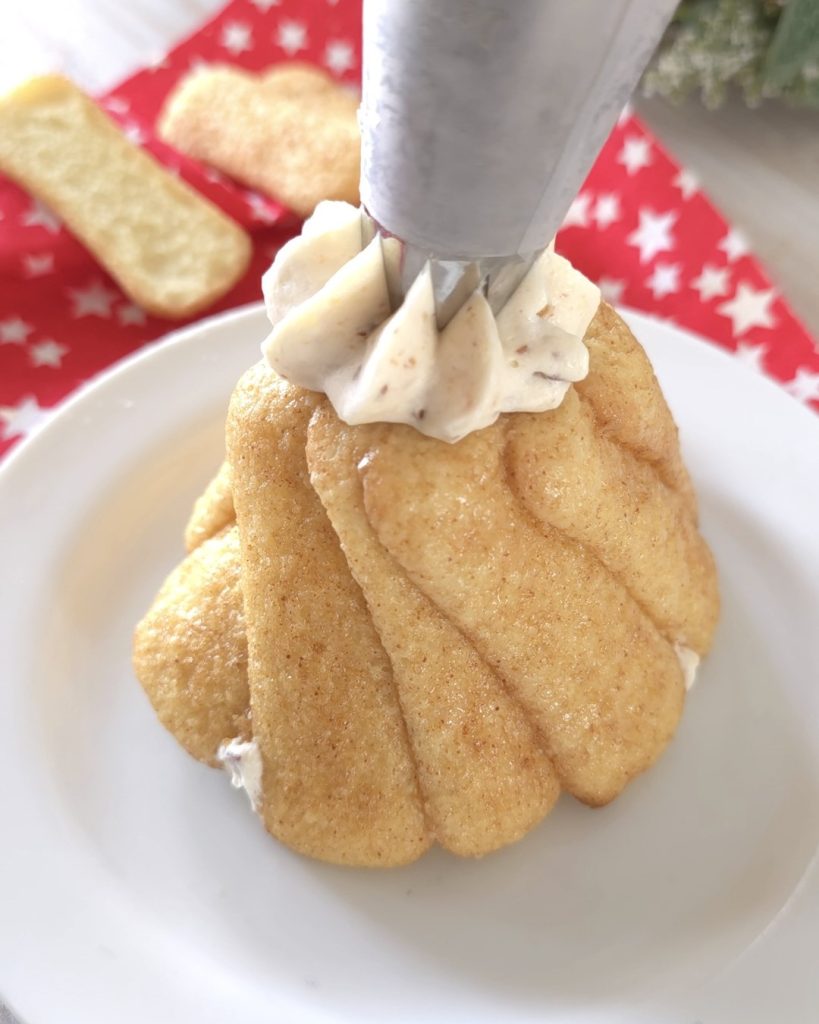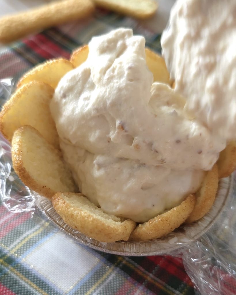 Recheie cada sobremesa individual com o creme de mascarpone, depois feche para dentro, dobrando levemente os Pavesini. Cubra com filme plástico e deixe descansar na geladeira por algumas horas.