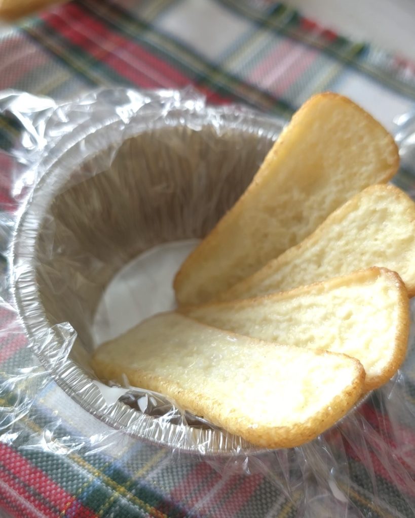 Forre forminhas com filme plástico, em seguida molhe rapidamente os biscoitos com o leite e depois disponha os biscoitos forrando a forma.