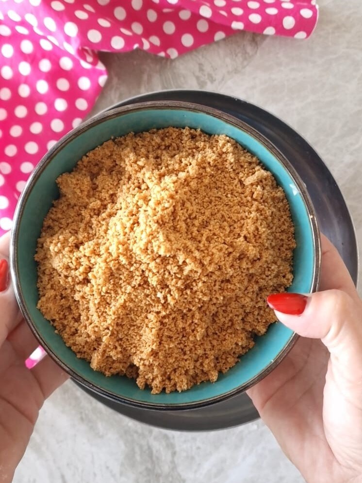 Comece tostando as amêndoas na frigideira, levará cerca de 5 minutos, depois deixe esfriar. Em seguida, pulverize as mesmas em um mixer, (no meu caso usei as lâminas do Bimby).