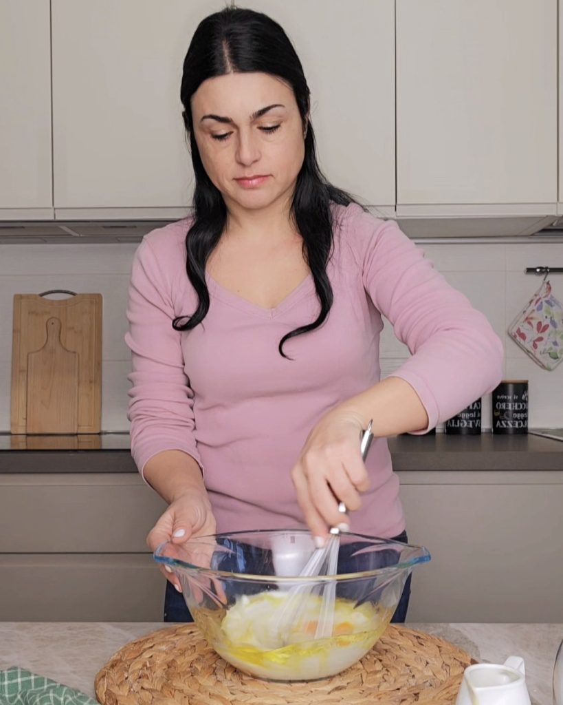 Nesse ponto, incorpore a farinha e o fermento peneirados, em seguida, misture bem para obter uma massa lisa e sem grumos.