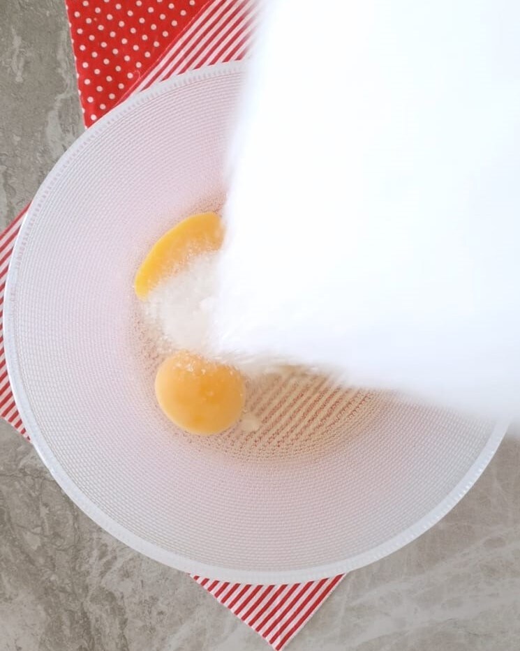 Em uma tigela grande, comece batendo os ovos com o açúcar;