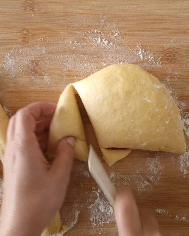 Após o tempo de descanso necessário, divida a massa em 10 pedaços.
