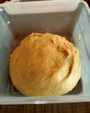 – Coloque a massa em uma tigela levemente untada, cubra com filme plástico e coloque na geladeira durante a noite ou por algumas horas. (se quiser terminar no mesmo dia)